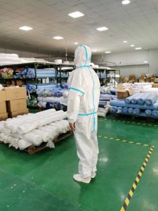 | Fertig | Finish: Laminated with PE milky breathable membrane PASS GB 19082-2009; Weight: 75gsm±5gsm Cuttable width: 155cm; |